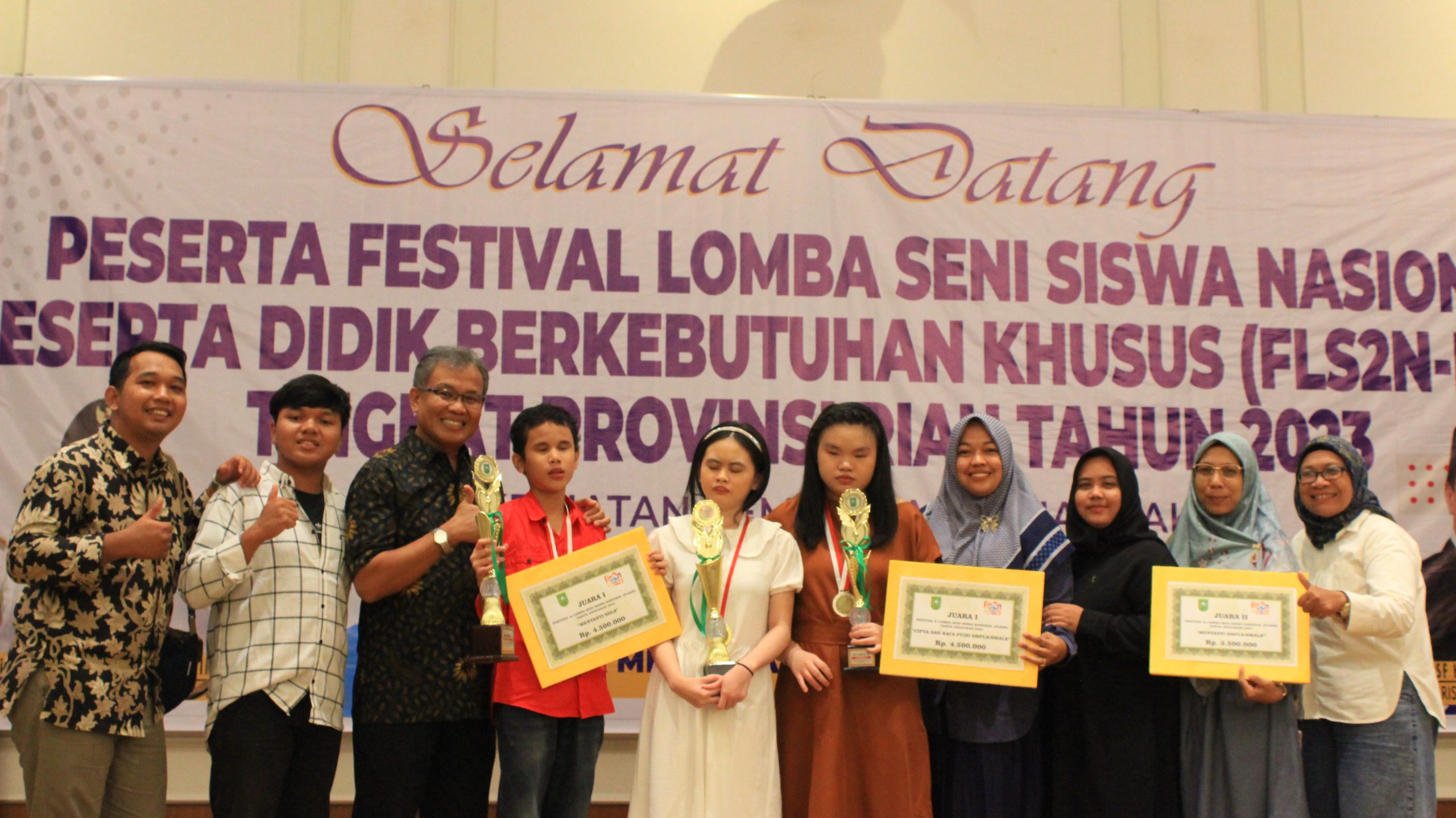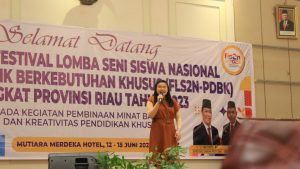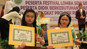 Pekanbaru, 15 Juni 2023 – Suasana kebanggaan memenuhi Hotel Mutiara Merdeka Pekanbaru pada Rabu malam tanggal 14 Juni 2023. Acara pengumuman Juara Festival Lomba dan Lomba Seni FL2SN (Festival Lomba dan Lomba Seni Nasional) tingkat provinsi dihadiri oleh peserta dan tamu undangan dari berbagai sekolah inklusi. Tidak ketinggalan, SLB Cendana Rumbai dan Duri berhasil mencuri perhatian dengan prestasi luar biasa yang diraih oleh tiga murid mereka.